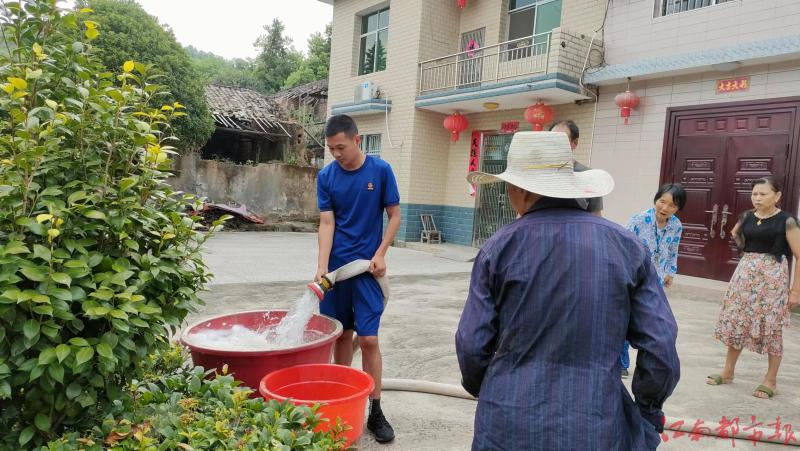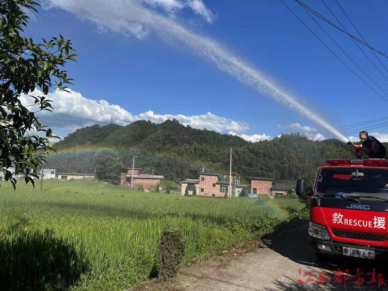 江南都市報訊 李科、全媒體記者陳建新攝影報道:入伏以來,受持續高溫天氣影響,萍鄉市部分多地出現嚴重旱情,多個鄉鎮出現嚴重干旱,部分鄉村水池、水井已干枯見底,群眾生活用水、農作物灌溉用水受到影響。萍鄉市消防救援支隊依托全市44支鄉鎮專職隊伍,組建“抗旱應急保障車隊”,快速投入抗旱送水保民生行動。截至8月16日上午9時,全市共出動警力263人次,消防車100余趟次,為60余畝農田、100余戶老百姓義務送水800余噸,解決了群眾生活和農作物用水問題。