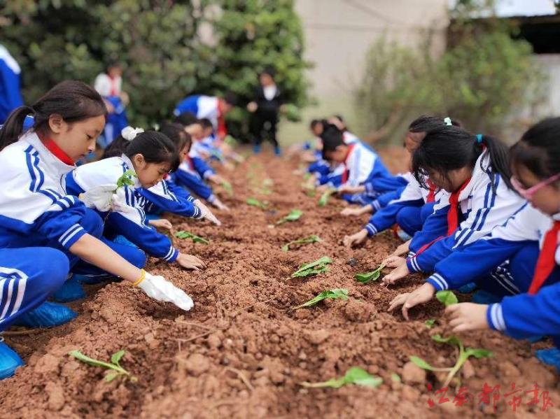 校園內,大家在老師的指導下或鋤地,或挖坑或栽苗,或澆灌。他們不怕臟、不怕累,個個干勁十足,在自己的“一畝三分地”幸福耕耘著,臉上洋溢著希望與喜悅。