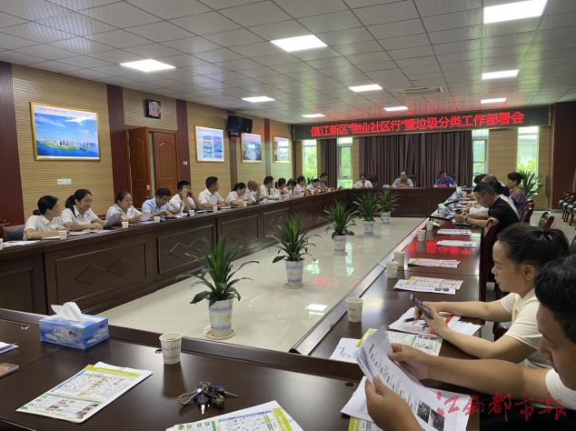 7月27日,鷹潭信江新區城管執法大隊組織召開2023年垃圾分類工作培訓部署會。