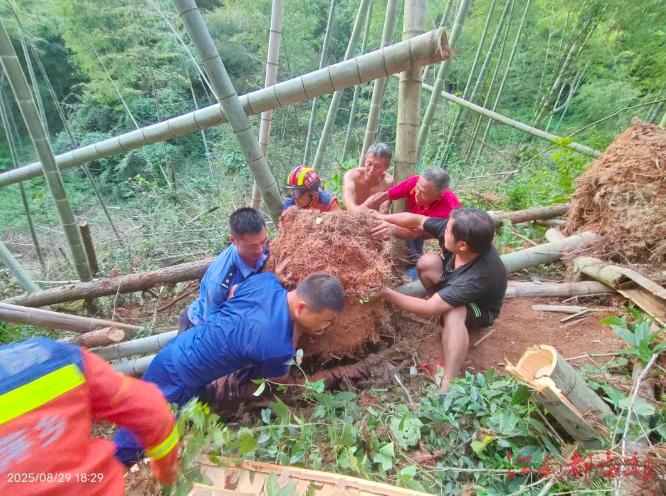 七旬老人深山砍柴時不幸被滾落樹墩壓住 多方聯手成功營救