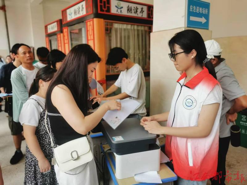 開學第一天,師生志愿者們忙得不亦樂乎,他們一個個活力四射,有的幫新生扛著行李,有的化身校園“小導游”。學校還為新生和家長們準備了貼心的服務,在教學樓一樓,設置了免費復印處,志愿者們熟練操作著復印機,每層樓設有免費的飲用水供應點。
