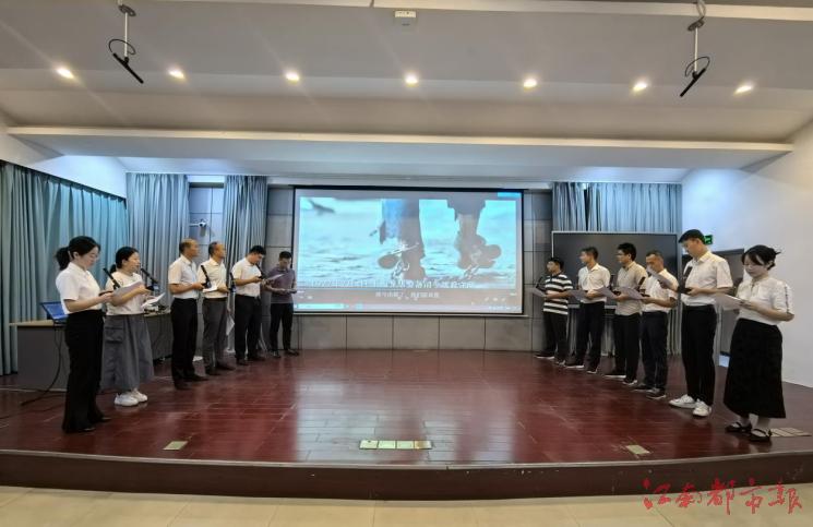 培訓(xùn)班第一組學(xué)員通過視頻配樂、人物對話等形式集體朗誦了《覺醒年代》,從眾學(xué)子異鄉(xiāng)憂祖國,到陳獨秀、李大釗等革命先驅(qū)在新文化運動中的奮斗與貢獻,再到五四運動的爆發(fā)與影響,全面展現(xiàn)了那個時代的社會變革與思想覺醒,讓全體學(xué)員更加深情地回顧那段歷史,深入了解那個時代的風(fēng)云變幻,感受革命先輩們的熱血與激情。