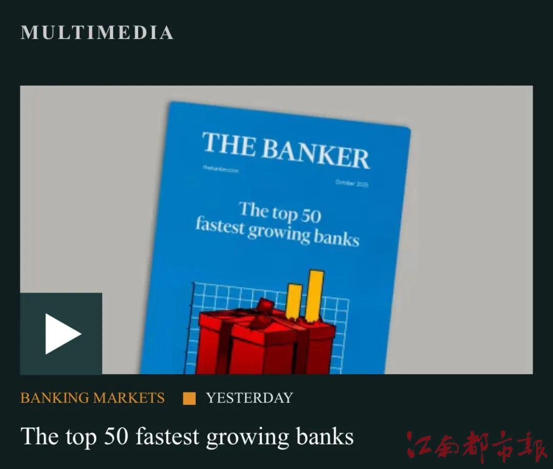 英國《銀行家》雜志(The Banker)在最新出版的10月刊上公布了“The top 50 fastest growing global banks”(全球銀行品牌增速50強(qiáng))榜單,在上榜的50家全球銀行中,寧波銀行以強(qiáng)勁的品牌價值增速,位列第33位。