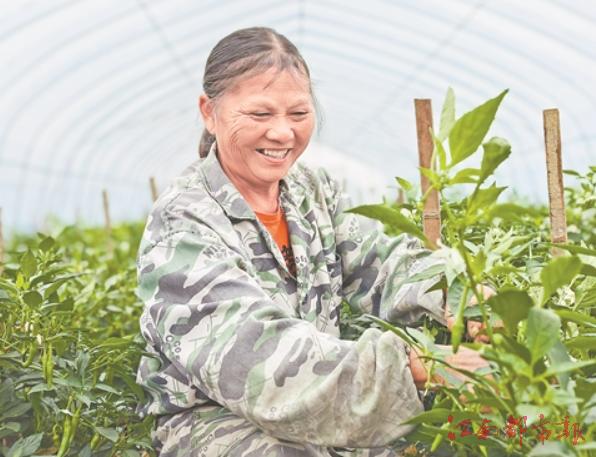 初冬,高安市上湖鄉富硒辣椒產業園,蔬菜大棚里綠意盎然,62歲的赤星村村民晏越華正在采摘秋辣椒。“今年種了9個大棚,秋辣椒3元錢一斤。”她邊摘辣椒邊向記者分享豐收的喜悅。